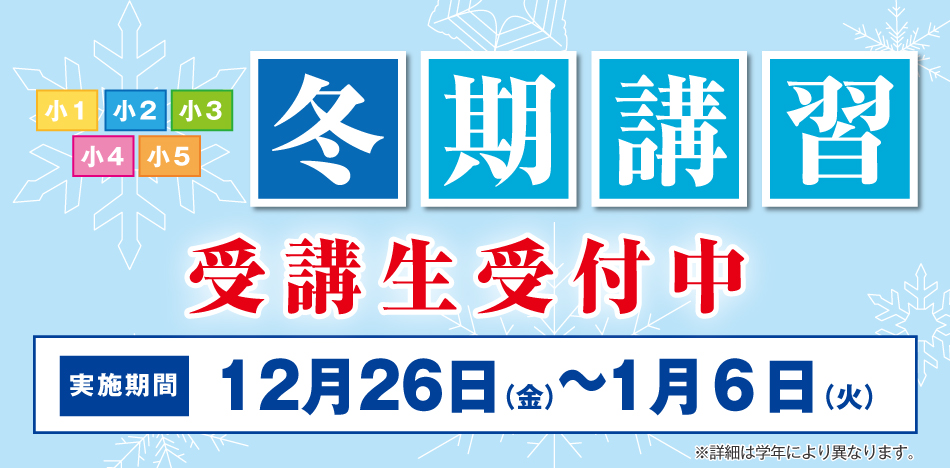 各学年における総復習を行う期間と位置づけて冬期講習を実施します。